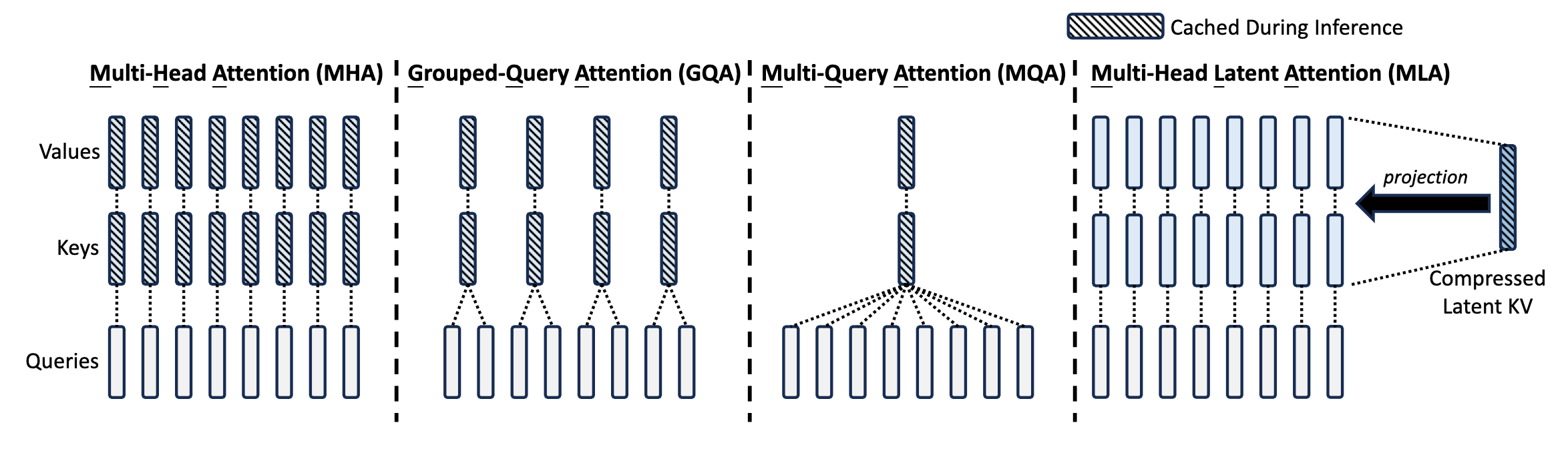 From MHA to MLA, the evolution of the Attention mechanism clearly illustrates the continuous trade-offs between algorithmic performance and engineering constraints (VRAM, bandwidth):